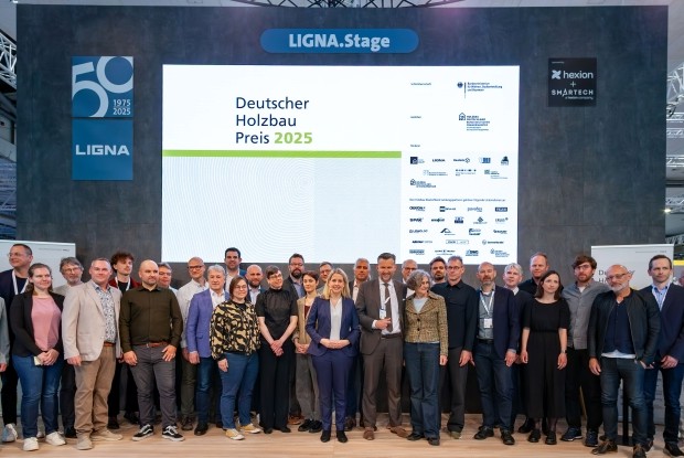 Am 27. Mai wurde auf der Fachmesse LIGNA in Anwesenheit der Bundesbauministerin Verena Hubertz der Deutsche Holzbaupreis 2025 und der Hochschulpreis Holzbau 2025 verliehen.