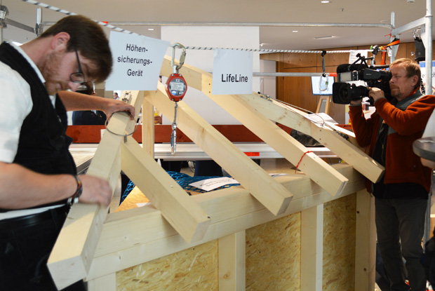 Absturz ist für Zimmerer die größte Gefährdung auf Baustellen. Insbesondere gegen den Absturz nach innen hat die BG BAU gemeinsam mit dem „Runden Tisch Zimmerer“ fünf Maßnahmen entwickelt. Auf Veranstaltungen in ganz Bayern werden sie vorgestellt.