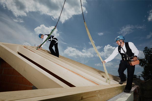 Zimmerer auf dem Dach sind der Sonne besonders ausgesetzt. Wer sich dagegen nicht schützt und häufig einen Sonnenbrand hat, steigert sein Risiko Hautkrebs zu bekommen. Im Interview erklärt der stellv. Leiter der Hauptabteilung Prävention der BG BAU, Prof. Frank Werner, warum weißer Hautkrebs die häufigste Berufskrankheit bei BG-Versicherten ist und wie viele Esslöffel Sonnencreme benötigt werden, um den ganzen Körper einzuschmieren.